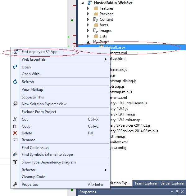 Note: You will still have to initially deploy the solution to SharePoint Online using the traditional methods however once this tool is installed and the SharePoint Add-In has been deployed, you can simply right click a file after making changes and select Fast deploy to SP App. Using this method takes only seconds to save the new file.